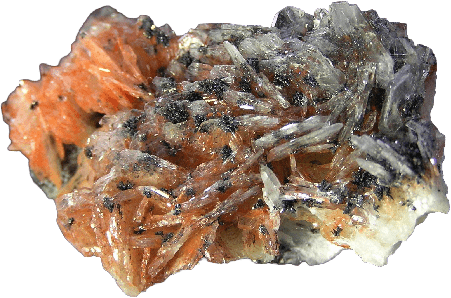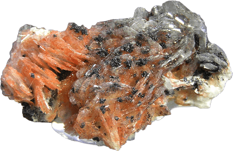 Excellent small cabinet specimen with blades of Barite dusted with Goethite that provides the color in and on the blades.