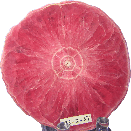 Beautiful cross-section of a Rhodochrosite Stalactite polished on both sides. Great example of the “Inca Rose.” Ex. Donald Kelman Collection
