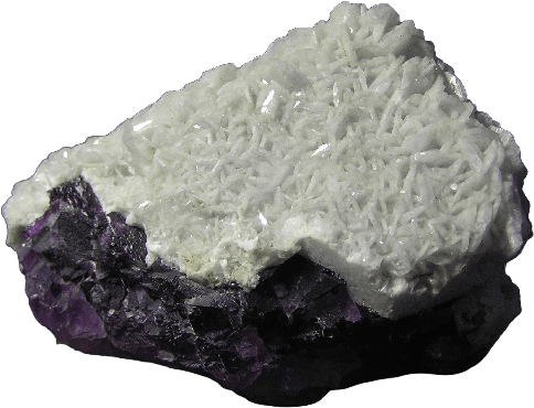 Purple Fluorite cubes covered with blades of white Barite on all sides with no damage.