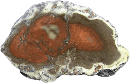 Great example of datolite from the Ridge Mine with the copper center, outlined with the dark ring and white border. Scarce.