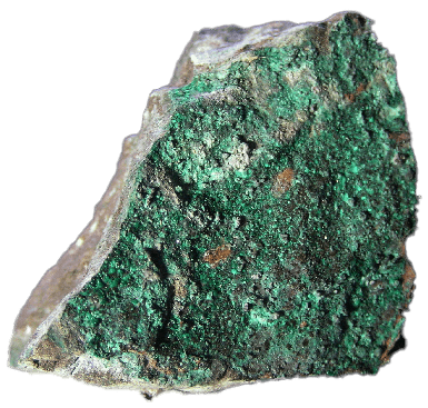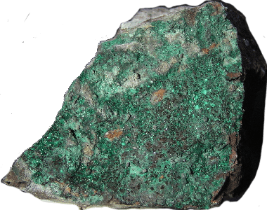 Scarce copper mineral collected July 23, 1999 when there was still a rock pile. There will be no more of these.