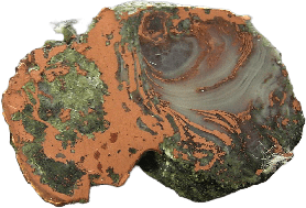 Great example of the Agates that have native Copper replacing some of the Agate or its banding. Good size.