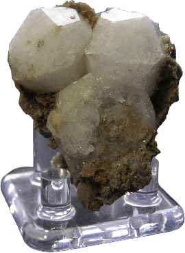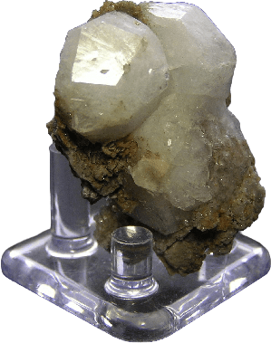 Excellent miniature with two large, complete crystals on top of a partially formed crystal. Likely from the Phoenix Mine.