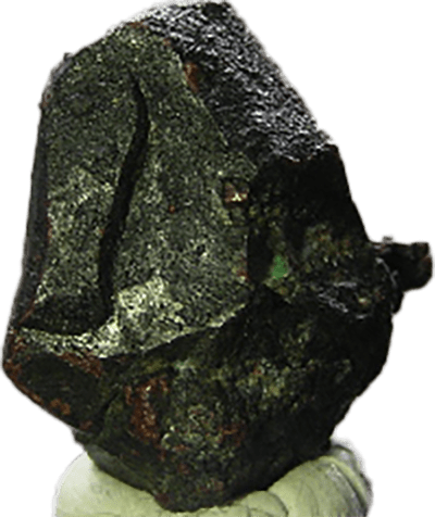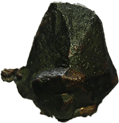 Excellent thumbnail of a tenorite coated copper crystal from this small mine in Ontonagon County. Crystallized on all sides.