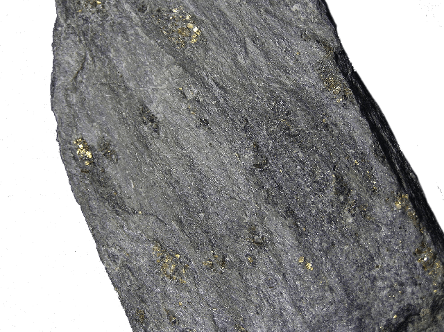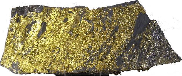 Gorgeous specimen with a layer of chalcopyrite coating a slab of shale. Seldom seen locality!
