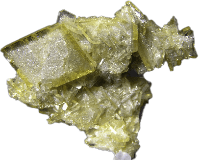 Beautiful transparent yellow blades of barite, some with a sugary coating of micro calcites. Great miniature.