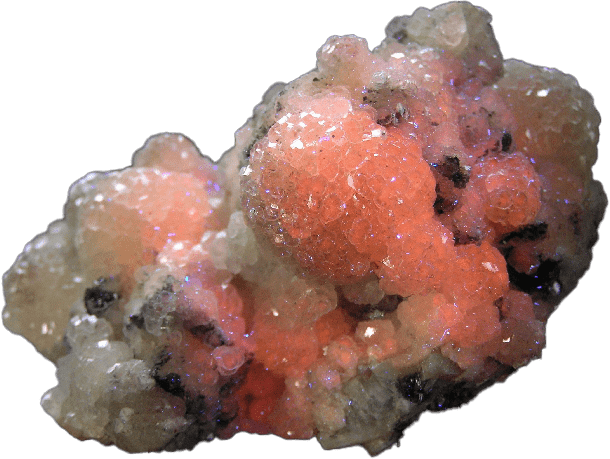 Gorgeous cabinet specimen with balls of calcite on a hematite matrix. Very UV reactive. Ex Shawn Carlson collection, SC-P 613