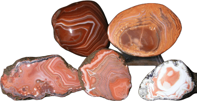 Fine group of polished “Keweenaws”. The two larger Agates at the back are from Manitou Island. The three in the front are from a deposit out on Keweenaw Point. Collected by Paul LaBonte last summer.